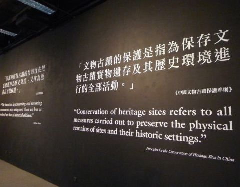 虽然是有关老文物的展出,但新颖有趣。关于教堂,提供两幅图片让你找不同,并电脑计时,让人跃跃欲试。走进中式建筑展厅,耳畔弥漫的是中式丝竹之声,婉转悠扬,于是猜测对面的西式建筑到底是播放贝多芬还是莫扎特?错了,这里听见的是港岛独有的丁丁车的铃铛声,一个短片正在播放,你仿佛正坐在电车中,一路欣赏窗外的西式教堂等。黑白片,好似回到了从前。