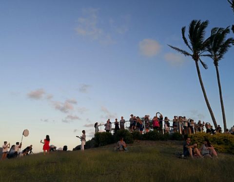 独树丘是汉密尔顿岛上观赏落日的最佳景点。点上一杯酒,与爱人家人一起,享受海风椰韵,无边美景。独树丘(one tree hill)日落,下午五点多太阳就下山了。