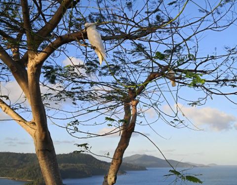 "独树山",是島上最高的地方,有间观景酒吧,可坐下来看日落!不过千万小心,白身黄冠鹦鹉,随时会来抢食吃!另外,还能在山上,发现野袋鼠!乘免费巴士,即可到达!
