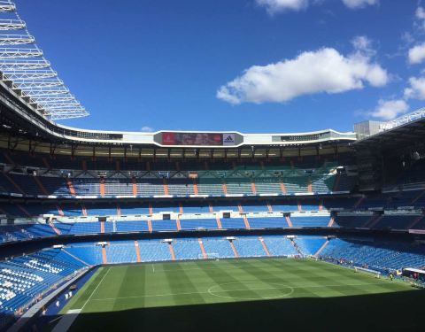 圣地亚哥·伯纳乌体育场是皇家马德里的主场,皇马球迷来到马德里不可错过的一站,诸如罗纳尔多、劳尔、齐达内,都在伯纳乌这片神圣、带有白色条纹的草场上驰骋过。圣地亚哥·伯纳乌体育场于1947年开幕,当时的名字是圣马丁新球场(NuevoEstadioChamartín),更名为“圣地亚哥·伯纳乌体育场”是为了纪念圣地亚哥·伯纳乌。圣地亚哥·伯纳乌体育场可以容纳80000名观众,是西班牙规模较大的球场之一。订票指南作为皇家马德里的主场,这里是皇马球迷来到马德里不可错过的一站。如果你恰逢赛季抵达马德里,可以买张球票,欣赏皇马球员精湛的球技,更能体验充满掌声和欢呼声、令人热血沸腾的现场气氛。一般球赛价格为20欧元起,根据比赛的精彩程度上涨,赛前球场现场购票,需提前一周,也可提前在官网预约。伯纳乌之旅如果在马德里期间没有赶上比赛也不要紧,游览球场也是一个不错的选择:在球场边的教练席和球员替补席坐一坐;参观球员更衣室、新闻中心等设施;漫步于奖杯陈列展柜间,回顾这支足球豪门所取得的璀璨荣耀。圣地亚哥·伯纳乌体育场参观路线一般为:球场全景、“历史佳俱乐部”大厅、体验厅、球场、荣誉包厢、替补席、教练席、球员通道、更衣室、新闻厅、官方商店。
