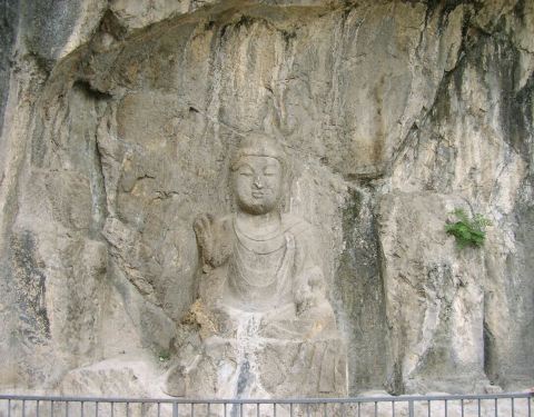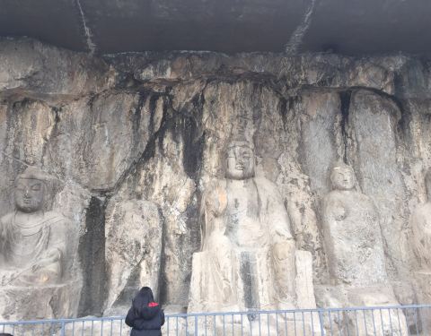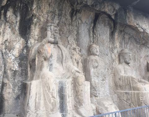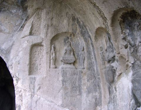 过了宾阳洞和敬善寺洞后,便到了摩崖三佛龛,它的建造年份可追溯至武则天执政时期,听说由于某种原因,有部分尙未完工,但也是历史的见证。