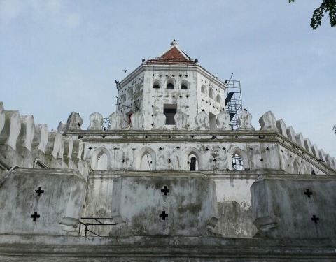 要塞被漆成雪白的好像是新的,静静的公园内,游客并不是很多。整个要塞也没什么特别的介绍这个要塞就在曼谷通向大皇宫的路上。要塞被漆成雪白的好像是新的,静静的公园内,游客并不是很多。靠近一条湄南河的支流。整个要塞也没什么特别的介绍。但是由于在河边,可以想象当年这个要塞的重要性。