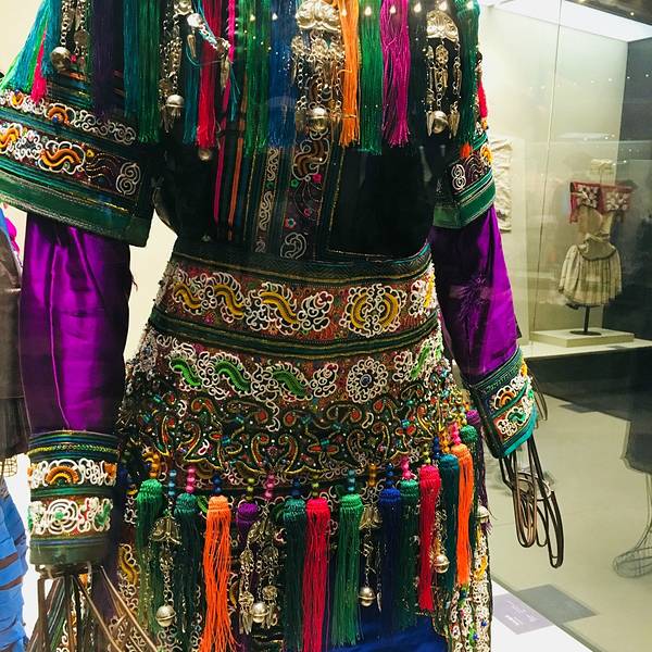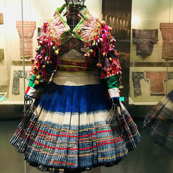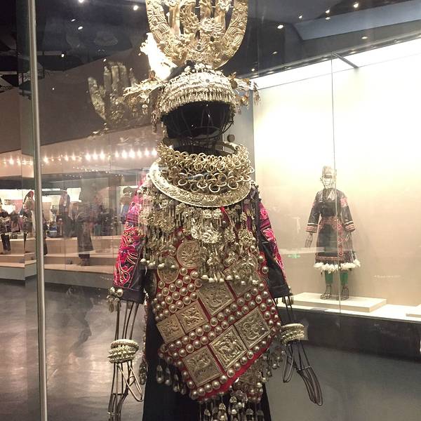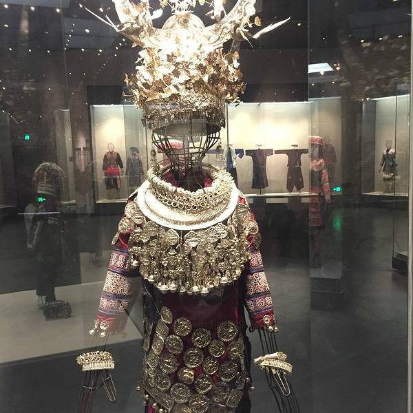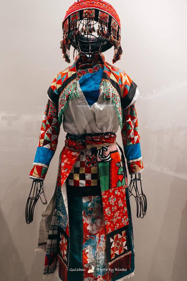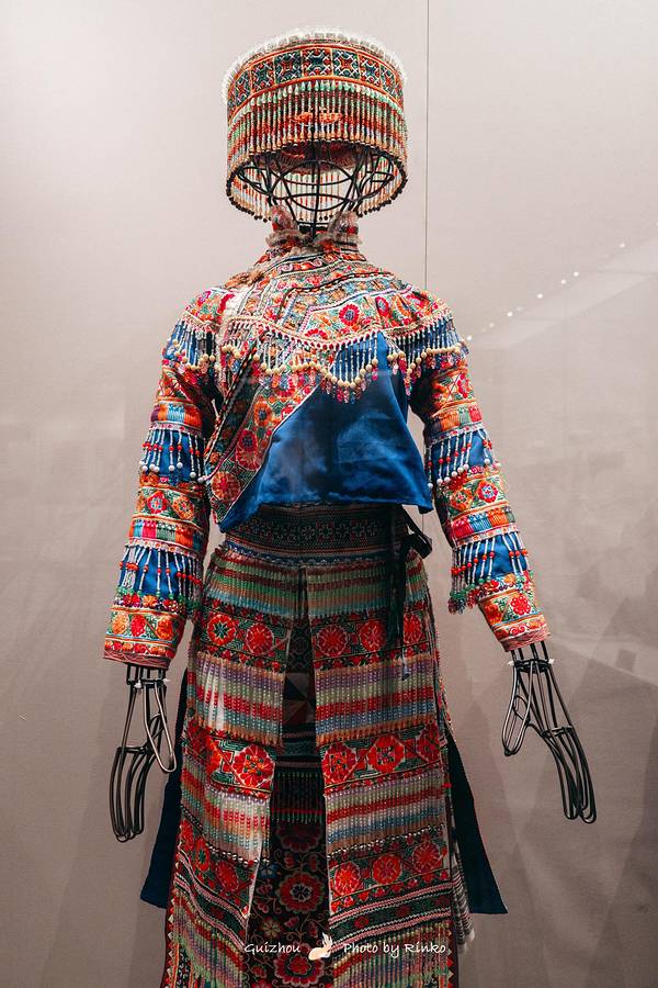 ...得不叹服老祖宗的高尚审美:剑河苗族锡绣女套装、苗族菱形花块男长衫、革家蜡染镶挑绣花块对襟衣……每次解锁新城市都不忘打卡博物馆,这次也不意外。前一晚住在贵阳观山湖区,离贵州博物馆不远,起一大早骑单车前往参观。