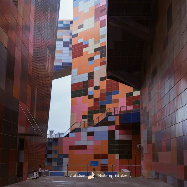 贵州博物馆的外墙很有设计感,彩色马赛克非常洋气前卫,和刻板的博物馆印象大相径庭。天气...每次解锁新城市都不忘打卡博物馆,这次也不意外。前一晚住在贵阳观山湖区,离贵州博物馆不远,起一大早骑单车前往参观。