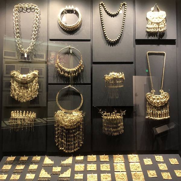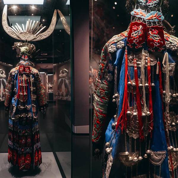 贵州博物馆的外墙很有设计感,彩色马赛克非常洋气前卫,和刻板的博物馆印象大相径庭。天气有点阴,但不影响高级感十足,如果蓝天白云的晴天,更会是时尚大片。内部的参观动线通过空中廊桥连接起来,从一层往上逛到三层,可以从这里走回原点,找好角度的话,有很多适合拍照的绝佳机位。整个博物馆分成四个部分:“民族贵州”、“多彩贵州”、“古生物王国”和“历史贵州”。比较鲜明特色之一就是“多彩贵州”这一主题,展示了世代居住在贵州的十八个少数民的民俗风情,在国内诸多省级博物馆中也算独树一帜。在服饰王国的部分,有贵州各地少数民族的传统服饰和头饰,都是手工制作,技艺精湛,我一向都喜欢美丽的衣服,看到这些便挪不动腿,即使是国际大品牌也会在从中找到贯通古今中西的时尚元素,不得不叹服老祖宗的高尚审美:剑河苗族锡绣女套装、苗族菱形花块男长衫、革家蜡染镶挑绣花块对襟衣……苗绣纹样流传千百而不辍。绣品华丽繁复,色彩鲜艳夺目,仔细观摩这些藏品会发现,出现了很多蝴蝶元素,还有名叫“蝴蝶妈妈”的绣片,这源于“枫木歌”中,传说生于枫树心的蝴蝶孕育了人类的始祖姜央和天地万物,所以蝴蝶在苗家被奉为是一切的祖先,敬为“蝴蝶妈妈”。苗绣的作品中也反应着对祖先和神灵的敬仰和感恩,传达一种抽象的朴素的世界观和生命观。说起贵州博物馆的“镇馆之宝”,便是这辆出土于兴义万屯汉墓的东汉铜车马,也是国内出土的车马文物中最为精美的,说它是古代豪华跑车也绝不夸张,内部还铺有纺织品和可以放置行李的货槽,可以说是奢华内饰超大容量。 展开