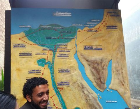 这座教堂位于开罗老区,面积不大,从悬挂教堂过去一点就是。经过一段满是图书的小巷,会看到一副埃及地图,这里能清晰的看到我们埃及八天游的过程,红海到地中海,阿斯旺到开罗。教堂里内容不多,和其他的教堂没有多大区别,唯一印象深刻的就是玻璃罩着一个原始的榨汁机,挺有趣。