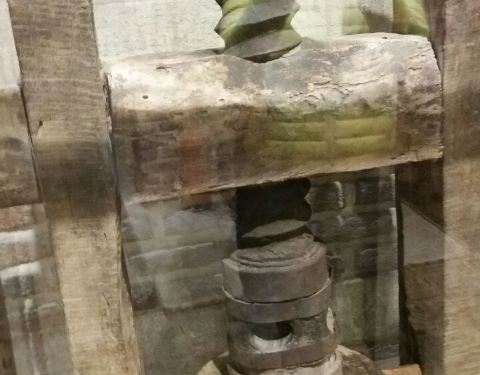 教堂里内容不多,和其他的教堂没有多大区别,唯一印象深刻的就是玻璃罩着一个原始的榨汁机,挺有趣