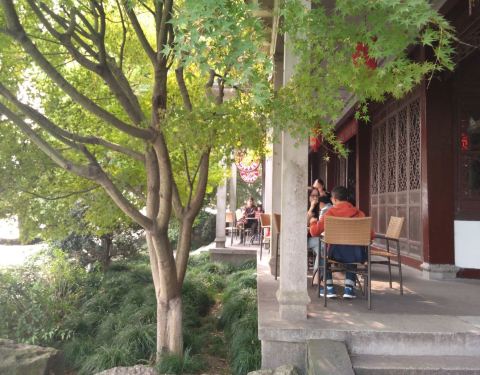 有特色的临湖建筑物,曾经有展品展示,也曾关停良久,现在己经变成了一个咖啡为主的西餐厅,游客玩累了,在如此绝佳地,面朝西湖,品一下西点,也是一种特色。