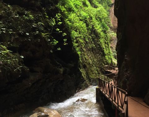 峡谷风景的典型。整个峡谷长3.5公里左右,特别凉爽,参观后建议原路返回,去做景交车需爬1.5公里山路,天热的话就累了。景点性价比高。