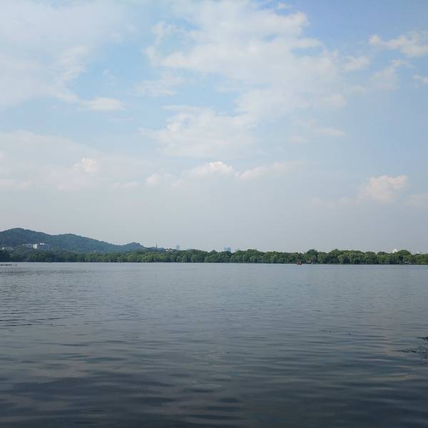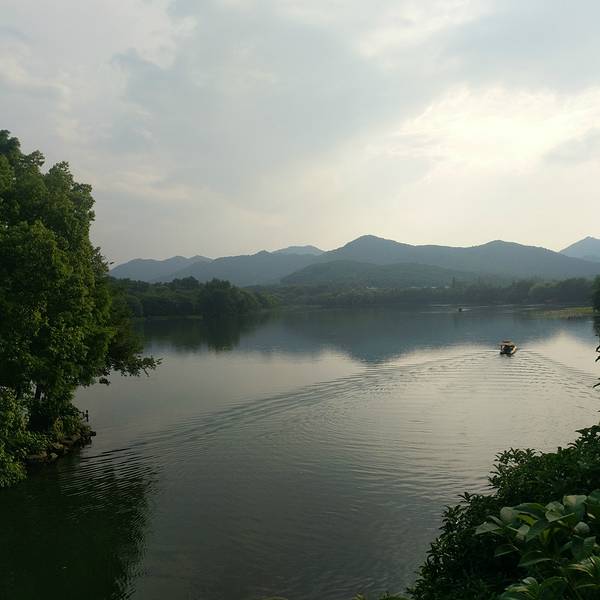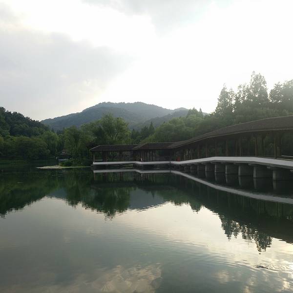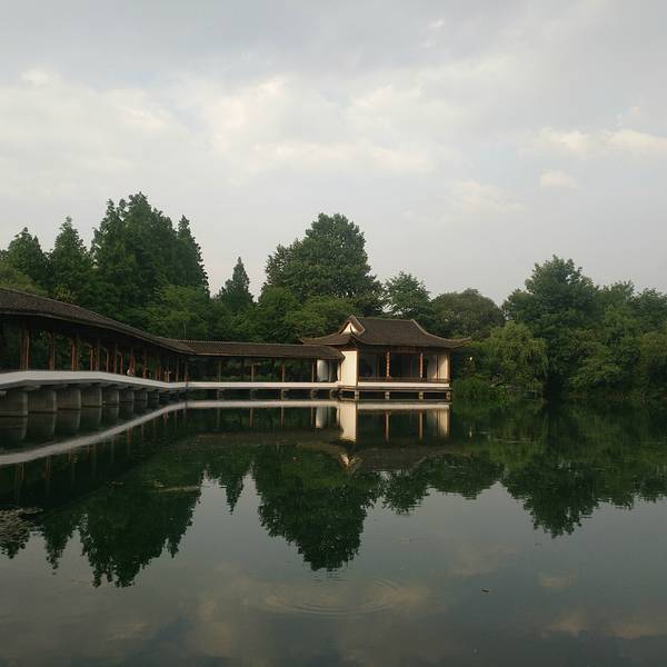 水天一色,中间是精妙绝伦的建筑,别有一番意境,游西湖之前可以来看看