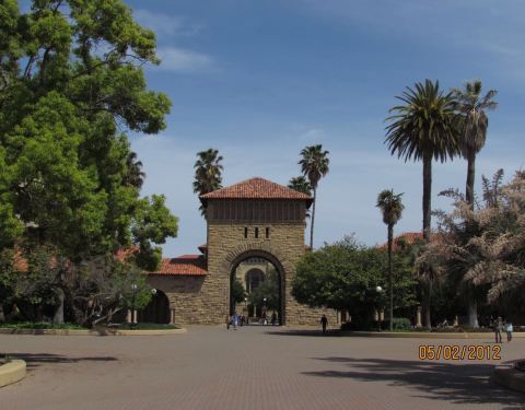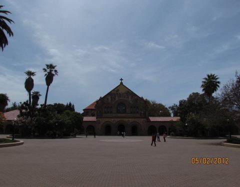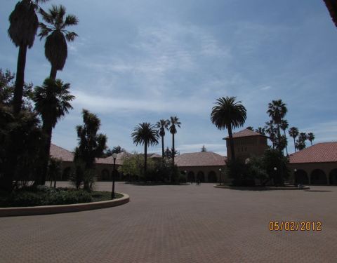 进入斯坦福的大门,沿着笔直的棕榈大道走到头,就到了著名的椭圆形公园,这是一片很大的草坪,无数学子一起享受加州的阳光。广场的正中央有个花坛,设置了座椅供游人休息。花坛中间有一个大大的由红花组成的S, 即是Stanford的首字母。