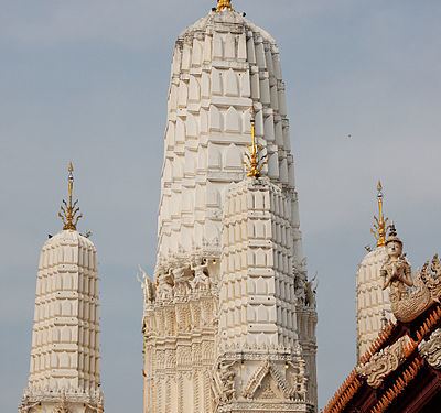 玛哈泰窝拉威汉寺的五个白色的粉红佛塔是非常独特的,屋顶上的雕像是很壮观的,为了进入主厅,一定要脱掉鞋子。这座塔以高棉的风格建造,几乎可以从镇上的任何地方看到,到了晚上就会被照亮。