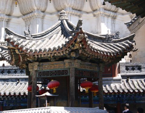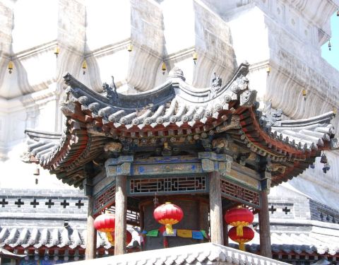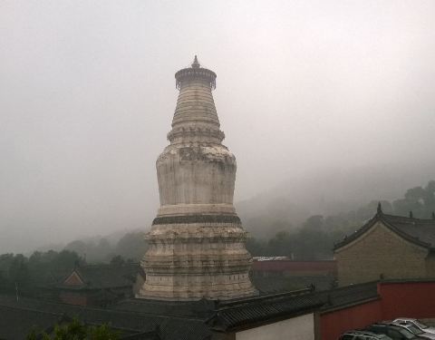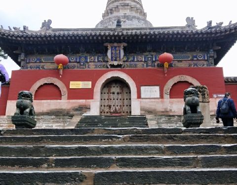 登上显通寺钟楼,可近距离观看对面的白塔,五台山的标志和象征