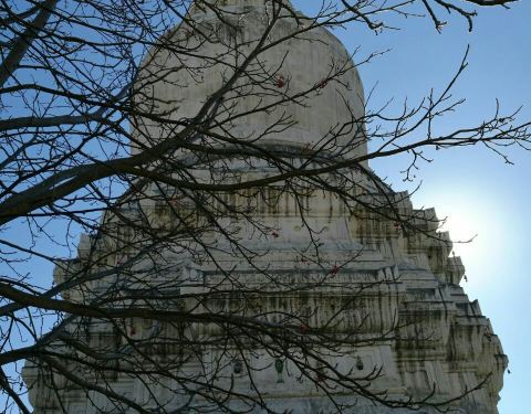进入景区先印入我眼帘的就是大白塔。远远望去非常壮观。近距离接触感觉一种无形的佛家力量。值得一去朝拜