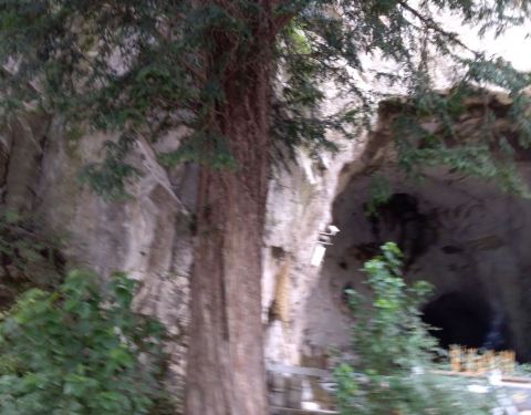 云台山的药王洞是茱萸峰的半山腰到山顶之间的一处山洞,是供奉药王的,洞不大,洞前有一个棵大的红豆杉树