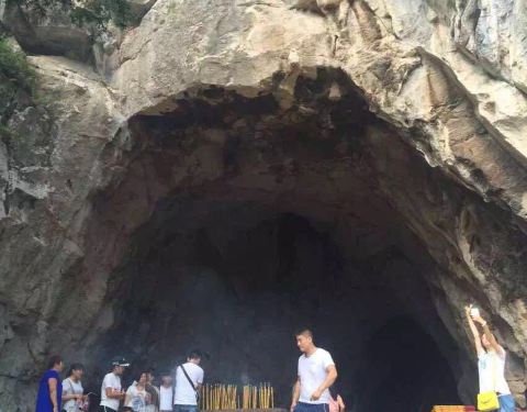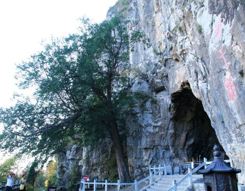 云台山的药王洞是茱萸峰的半山腰到山顶之间的一处山洞,是供奉药王的,洞不大,洞前有一个棵大的红豆杉树云台山的药王洞是茱萸峰的半山腰到山顶之间的一处山洞,是供奉药王的,洞不大,洞前有一个棵大的红豆杉树。游客往山项爬山到这里有点累了,刚刚好可以坐一下,休息一下。