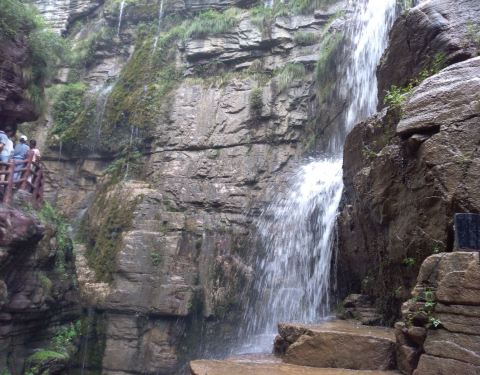 黄龙瀑位于云台山的红石峡景区内。这里在红石峡的中部位置,一条瀑布从天而降,还是有点可看性的。不过瀑布不是太大,个人感觉一般吧。