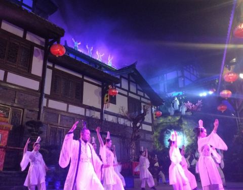 这个实景表演还是很有特色的,投入的成本不大,人员也不算多,但效果还不错,基本表现了阆中的文化和...这个实景表演还是很有特色的,投入的成本不大,人员也不算多,但效果还不错,基本表现了阆中的文化和特色,值得一看。
