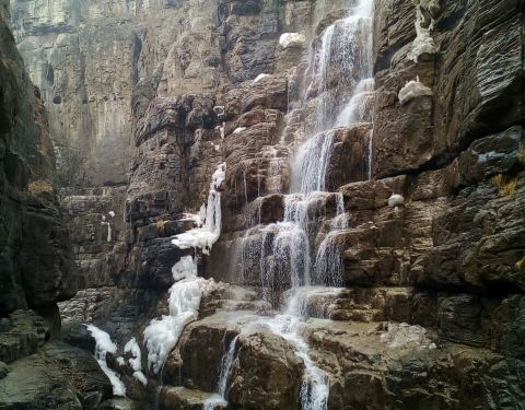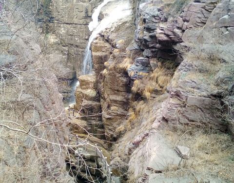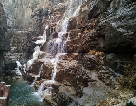 这里是红石峡内最深的一处水潭,由周边红色砂岩映衬,显得非常深邃,潭水就像墨玉一般,有一道飞瀑直入潭中,犹如苍龙入海,因此使它得名“黑龙潭”。