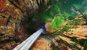 安赫尔瀑布又名天使瀑布,位于委内瑞拉的圭亚那高原,瀑布处于原始森林中,怪石林立,瀑布好象从天而降,非常振憾,强力推荐。一生必游。