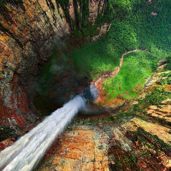 安赫尔瀑布,西班牙语为Salto Angel,亦称丘伦梅鲁瀑布(Salto Churun Meru)。 委内瑞拉玻利瓦尔(Bolivar)州圭亚那高原卡罗尼(Caroni)河支流丘伦河(Rio Churun)上的瀑布。图片来自于网络落差979米(3,212英尺),为世界上落差第一大的瀑布。底宽150米(500英尺)。瀑布为密林遮掩,宜从空中赏看。图片来自于网络