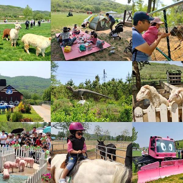 有小宝宝的最好带上推车, ⭐进入牧场就是小朋友们最喜欢的小动物区,火鸡 ,小兔子 ,骆驼 ,山...[玫瑰]出发前准备: 喂小动物的胡萝卜,白菜,饮水,食物,防晒,野餐垫; [糖果]牧场里也有食物和饮品的,价格也不是很贵,冰红茶和百岁山都6元,自酿酸奶12元很好喝可以尝尝。 到达: 高速车程大约40分钟左右...[玫瑰]出发前准备: 喂小动物的胡萝卜,白菜,饮水,食物,防晒,野餐垫; [糖果]牧场里也有食物和饮品的,价格也不是很贵,冰红茶和百岁山都6元,自酿酸奶12元很好喝可以尝尝。 到达: 高速车程大约40分钟左右,沈大高速炮台出口不远就是,有明确指示到达牧场。 ️游玩时间: 我们是9点上高速,下午3点离开的。 ️停车: 停车场就在牧场入口处,停车位比较充裕,免费 门票: 平日69,周末79,一米以下儿童免费,我们在网上购买的门票58元。 ⭐牧场里道路平坦,可以租电瓶车游览,也可以步行参观,有小宝宝的最好带上推车, ⭐进入牧场就是小朋友们最喜欢的小动物区,火鸡 ,小兔子 ,骆驼 ,山羊 ,鸵鸟,梅花鹿,孔雀,毛驴,奶牛 ,小马 ⭐ 最受欢迎的就是散养羊驼区,羊驼温顺可爱,又喜欢亲近小朋友,是最费胡萝卜的地方。 ⭐ 过了羊驼区不远处,有一处适合休息野餐的地方,有售卖食物饮品的商亭,卫生间 和大片的树荫 ,孔雀啊小羊啊,毛驴拉磨,卡丁车(30元10分钟),还有小猪跳水表演都在这里,我们就是在这里野餐休息,顺便看了小猪跳水表演,一直待到12点半才继续游览。 ⭐ 继续游览就会看到恐龙森林,恐龙们有隐藏在树丛中的,也有成群结队觅食玩耍的,造型和生效都做的很逼真,同行的小男孩喜欢的不得了 ⭐ 走过恐龙森林,可以去表演场看马术表演,期间还会找小朋友和家长上台互动,猜中大鹅赛跑冠军的游客可以得到骑马的代金券; 骑马的费用是60块钱一圈100块钱两圈,一圈大概7、8分钟吧,要去牛仔餐厅里面买票。 ⭐ 到这里整个牧场就算游览结束了,淘气堡旁边会有免费的拖拉机改装的摆渡车送游客回到入口处,入口处还有一个免费的淘气堡和球池可以让小朋友们再开心一下 ⭐ 跟三寰牧场比较一下,这里的小动物更多一些,还有小猪跳水和马术表演以及恐龙森林,完全就是为小朋友们打造的欢乐牧场,很适合亲子游。 ※希望牧场可以增添卫生间和母婴室。 展开