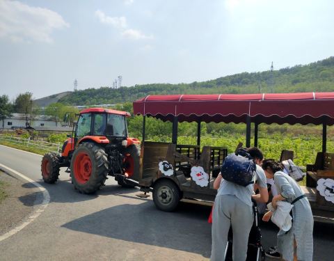 ⭐ 到这里整个牧场就算游览结束了,淘气堡旁边会有免费的拖拉机改装的摆渡车送游客回到入口处,入口处还有一个免费的淘气堡和球池可以让小朋友们再开心一下😊
