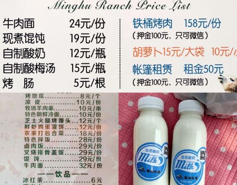 [糖果]牧场里也有食物和饮品的,价格也不是很贵,冰红茶和百岁山都6元,自酿酸奶12元很好喝可以尝尝。