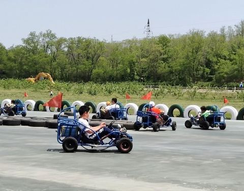 ⭐ 过了羊驼区不远处,有一处适合休息野餐的地方,有售卖食物饮品的商亭,卫生间🚾 和大片的树荫🌴 ,孔雀啊小羊啊,毛驴拉磨,卡丁车(30元10分钟),还有小猪跳水表演都在这里,我们就是在这里野餐休息,顺便看了小猪跳水表演,一直待到12点半才继续游览。