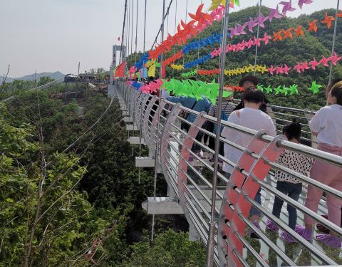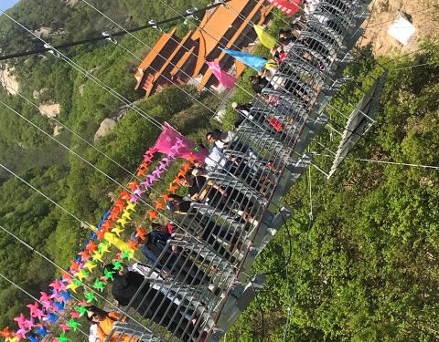 期待越大失望越大,门票30,吊桥70,滑梯30,每个项目都单独收费,主要是不值这个钱,玻璃吊桥感觉就像现在自家房顶上往下看,其他项目就是爬山了。没啥好玩的,吊桥走几步就到头了。走过吊桥,有个滑梯子30,又呲溜到山底下,还有那个车也是10块钱,就山底下拉到吊桥“龙潭”,也就是吊桥的起点的台阶下面。走走也就5分钟,坐车1分钟差不多。