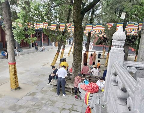 二世祖断臂的地方•立雪亭 少林寺里面还有一个殿叫立雪亭,最初的时候是达摩祖师潜心修炼的地方,所以才有了后面的故事。 相传,当年,二祖慧可想要向达摩祖师学习佛法,但是达摩祖师觉得他心性还不够坚定没有答应他,后面慧可一直坚持着,过了几年,达摩看他如此,告诉他只要天下红雪,就收他为徒,慧可听后,用刀砍了他的手臂,就这样,白雪变红雪,也终于成为了达摩的徒弟,后面还成为了二祖。为了表示对二祖的尊敬,僧众走过立雪亭,都会单臂行礼。 这么想来,这个立雪亭也是比较的神秘啊。立雪亭始建于明代,殿内供奉的是达摩铜像,但是后面被毁,1980年重新修建,用做少林寺僧众日常作佛事的场所。 •坐标:少林寺景区内的少林寺中 •开放时间:8:00-17:00 •门票:包含在大门票中 立雪亭隔壁还有一颗树,他是两种不同的树种合抱在一起的,预示着双方交好,还是很特别的,立雪亭远远的看去也还蛮好看的。