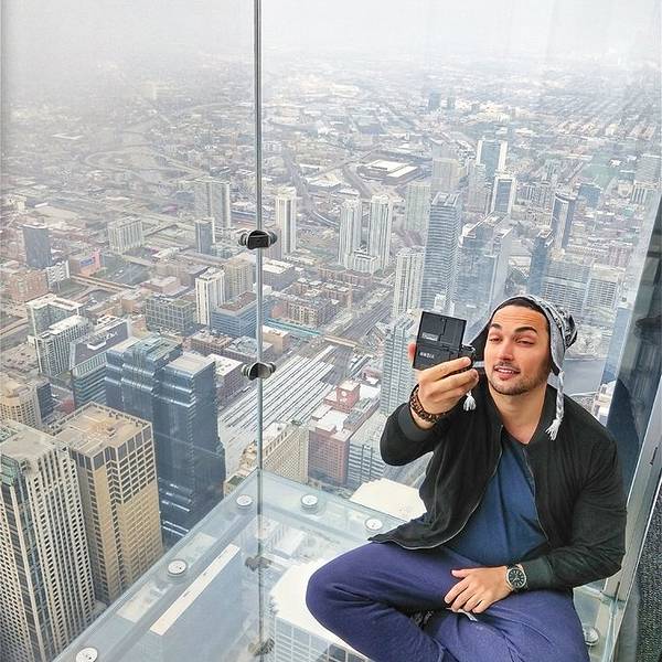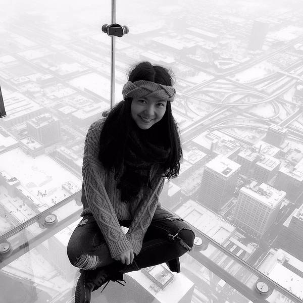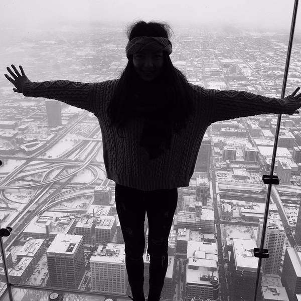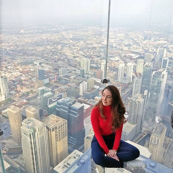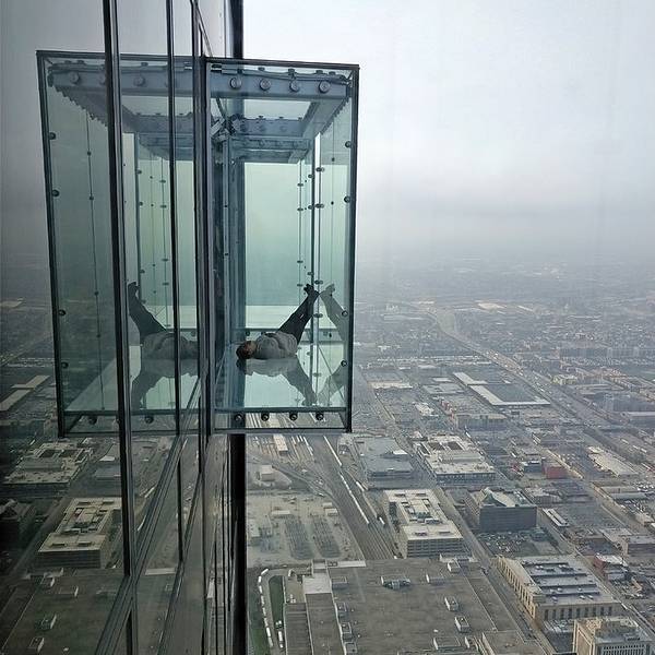 作为摩天大楼的故乡,芝加哥自然不缺登高远望的地方,其中最著名的就是这座威利斯大厦,我第一次来时还叫希尔斯大厦,刚建成时曾是世界第一高楼,后来逐渐被一些新兴的大厦超过,不过目前仍保持芝加哥第一的高度。楼高443米,地上110层,地下3层,包括两个线塔520米。我们在早晨7点乘高速电梯来到第103层观景台Skydeck,不幸的是当天阴雨,初生的太阳从厚厚云层中顽强地透出一抹光芒,唤醒了这座奇幻的大都市。环绕观景平台一周,可以俯瞰芝加哥城市全貌,鳞次栉比的高楼大厦构成了壮观的天际线,在云雾中别有风情。威利斯大厦最吸引人的就是这几个凸出墙体的透明玻璃盒子,第一次踏上去的时候确实有点心虚,毕竟脚下就是万丈深渊,熟悉一会就好了,承重很大很结实完全不用担心。这几个玻璃盒子绝对是凹造型摆pose的最佳选择,总能拍出惊世骇俗的“作品”,稍不留神发到ins上就红了。来自世界各地的“网红”纷纷出场,使出浑身解数,争取力拔头筹。最拼的是这位美女,解锁了各种姿势,完全可以给大厦代言了。美女拼,小伙也没闲着,自拍起来眼神也蛮迷离的。最难得的是在400米高空吃了顿早餐,也算是最高早餐之一了。 展开