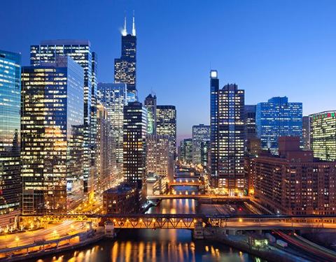 四展突出的玻璃悬窗在建筑沿河的西侧,是游客们的拍照圣地赶在天黑之前来到了芝加哥最著名的地标性建筑韦莱集团大厦,自1973年落成以来,它便是芝加哥最高的建筑。四展突出的玻璃悬窗在建筑沿河的西侧,是游客们的拍照圣地。