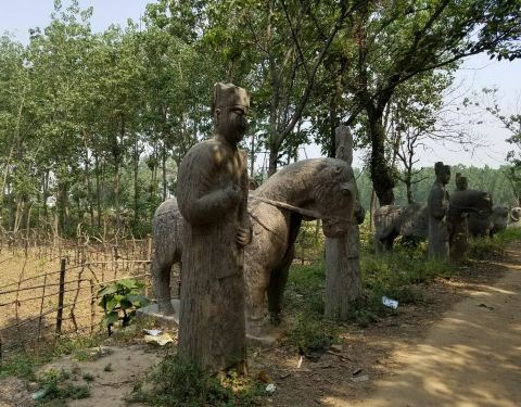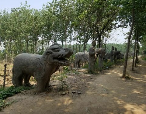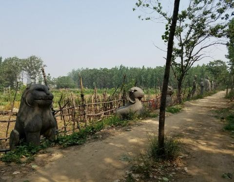 宋英宗的陵园,在巩义市区的偏僻处,离永昭陵特别近,我住在永昭陵旁边的酒店,永厚陵在酒店的侧西北后方,但是酒店的接待人员居然都不知道。陵园可以从永昭陵(宋陵公园)西门对着的小巷子一直走,大概600米后到达一垃圾处理集散地,再往前是气象观测站,旁边就是永厚陵了。没有开发为景点,就是一片农田,石像生保存得比较好,历史凭吊挺有意思。