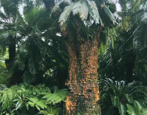 ...山千年苏铁园,看到了长得非常大的铁树,最有名的是一棵苏铁王,已经1350多岁了,是苏铁中的极品