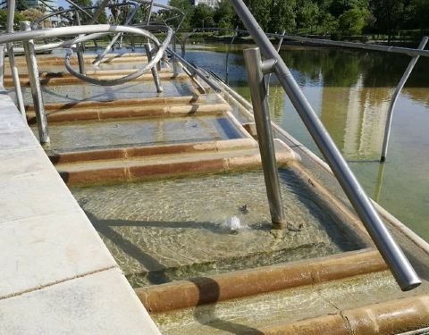 巴塞罗那城市街道的布局其实挺特别的,穿过它市中心的主街道是一条对角线,连接着城市的两端,这个公园就位于这条对角线大街的一侧,设计的挺有工业感和现代感的。