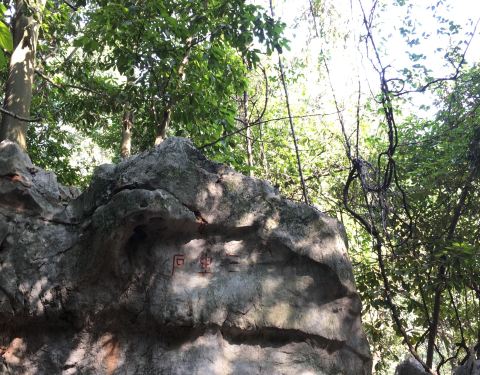 在三天竺的法镜寺后门出来,沿右手边小路拾阶而上,就能看到了,也可以从法镜寺的围墙边上走过去,因为法镜寺要收十元的门票,这里来的游客很少,这块石头造型也一般,但是寓意很好,据说在三生三世十里桃花播出...