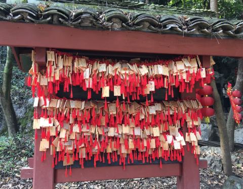 在三天竺的法镜寺后门出来,沿右手边小路拾阶而上,就能看到了,也可以从法镜寺的围墙边上走过去,因为法镜寺要收十元的门票,这里来的游客很少,这块石头造型也一般,但是寓意很好,据说在三生三世十里桃花播出后也是网红了一段时间。