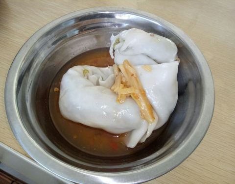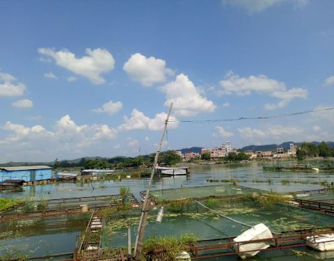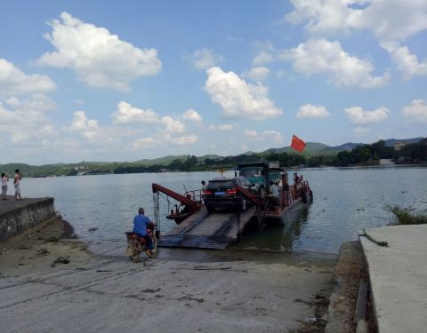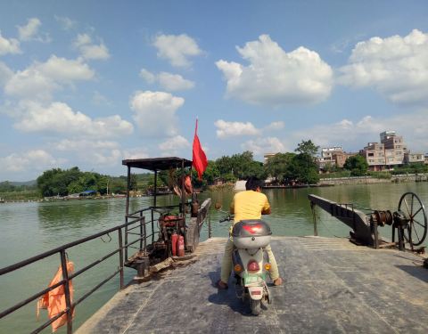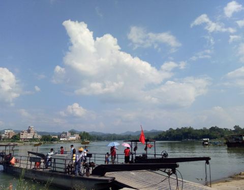 渡口景色优美,蓝天白云相映衬,偶有一叶独木小舟往来于渡口,颇有意境。古镇上的卷筒粉很有名,爽滑可口