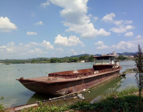 广西南宁隆安雁江古镇,建于清乾隆年间,距今已有二百多年历史,古镇依右江河畔而建。古时是广西有名的商埠,曾有“小香港”之美誉。去年国庆慕名前往,古镇上至今保留有三条古屋街,古屋多为古旧三层骑楼。街上的青石板路不复存在,现在都是水泥路了。雁江渡口为百色与南宁分界河段,在此右江河水分成两段。渡口仍有摆渡船,成为两岸往来的交通工具。渡口景色优美,蓝天白云相映衬,偶有一叶独木小舟往来于渡口,颇有意境。古镇上的卷筒粉很有名,爽滑可口。