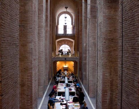庞培法布拉大学图书馆由Josep Fontserè大师在1874年设计,在1880年启用。最开始整个建筑是一个水箱,现在被改造成了UPF的图书馆。图书馆保持了砖墙原有的色彩,没有多余的修饰。这里不仅对大学生开放,普通人可以在此借阅图书,所以也是巴塞罗那热门的图书馆之一。
