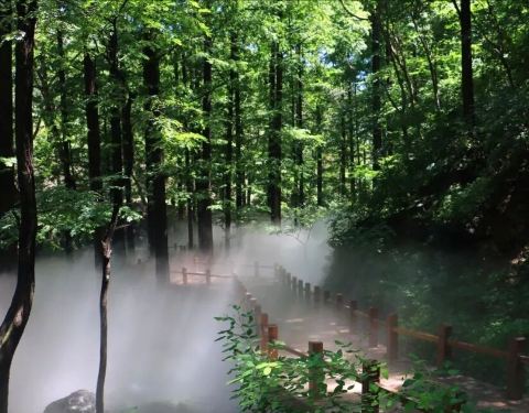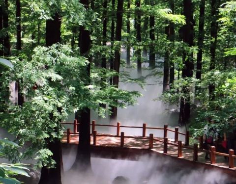 ...丽的鲜花后,出卧佛寺后门,可以进入一条幽静的山沟-樱桃沟,公园方用液氮蒸汽制造了宛若仙境的感觉