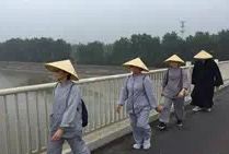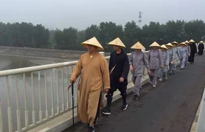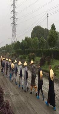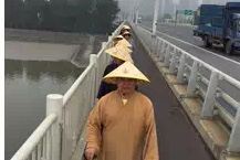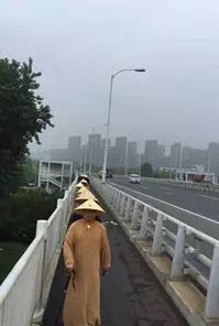 负责压队的印寺法师、方辉法师看到后方有车辆驶近之时,就提醒行脚队伍尽量靠边行走,保证行脚安全上海枫泾性觉寺行脚朝拜普陀山第四日,时间:2018年5月27日 ,天气:小雨转阴 晨五时起香,从海宁出发历时十个小时至杭州萧山地区,下午三时许完成预定行程,行程26公里。 当家妙悟法师带领行脚团队冒着蒙蒙细雨...上海枫泾性觉寺行脚朝拜普陀山第四日,时间:2018年5月27日 ,天气:小雨转阴 晨五时起香,从海宁出发历时十个小时至杭州萧山地区,下午三时许完成预定行程,行程26公里。 当家妙悟法师带领行脚团队冒着蒙蒙细雨就出发了,道路两边都是水汪汪的,天空也是一片雾蒙蒙的,视线不是很好。自昨日离开国道向着钱塘江边行进以来,路况大不如前:道路狭窄,车辆人流相互交织;没有隔离带,增加了行脚的危险性!整个行脚团队排成一条直线小心翼翼的前行。负责压队的印寺法师、方辉法师看到后方有车辆驶近之时,就提醒行脚队伍尽量靠边行走,保证行脚安全! 展开