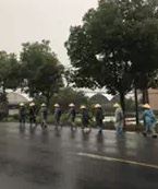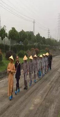 上海枫泾性觉寺行脚朝拜普陀山第四日,时间:2018年5月27日 ,天气:小雨转阴 晨五时起香,从海宁出发历时十个小时至杭州萧山地区,下午三时许完成预定行程,行程26公里。 当家妙悟法师带领行脚团队冒着蒙蒙细雨就出发了,道路两边都是水汪汪的,天空也是一片雾蒙蒙的,视线不是很好。自昨日离开国道向着钱塘江边行进以来,路况大不如前:道路狭窄,车辆人流相互交织;没有隔离带,增加了行脚的危险性!整个行脚团队排成一条直线小心翼翼的前行。负责压队的印寺法师、方辉法师看到后方有车辆驶近之时,就提醒行脚队伍尽量靠边行走,保证行脚安全!