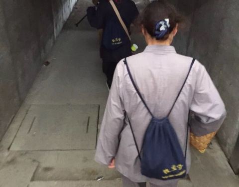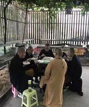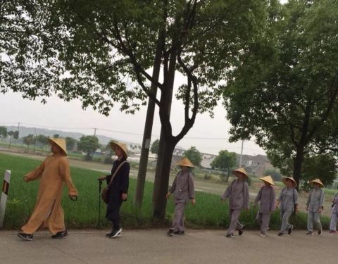 一大早行脚队僧众感觉疲惫不堪。2018年5月30日,上海枫泾性觉寺行脚僧朝拜普陀山继续前行
