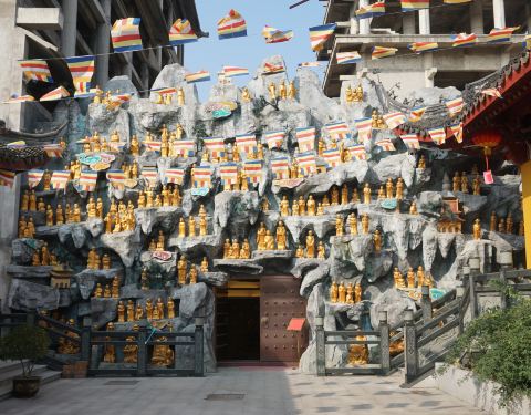 天光禅寺,庙宇虽然不大但后院有个巨大的放生池,中间供奉一尊观音圣像。大雄宝殿北面的一大块空地,正在施工,有牌子告示是建造七层的万佛宝塔。