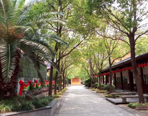 是一座三进 仿古园林式寺院,幽静古朴。寺外有牌坊,很好找