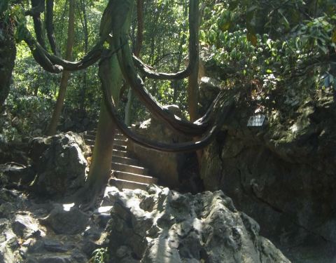 去往飞来峰的半路上就有这座亭子的,非常的古色古香的,时间比较紧张我们就忽略过这个景点,只是匆匆扫几眼就算了,周围都是古树还有些景致的