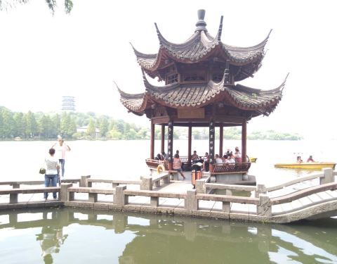 夕影亭是西湖扩建时连同长桥一起重新修建的,由于在水面之上,加上外型还是不错的,吸引了不少游客的合影留念,同时,此处也是远观雷峰塔的一个好地方。
