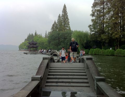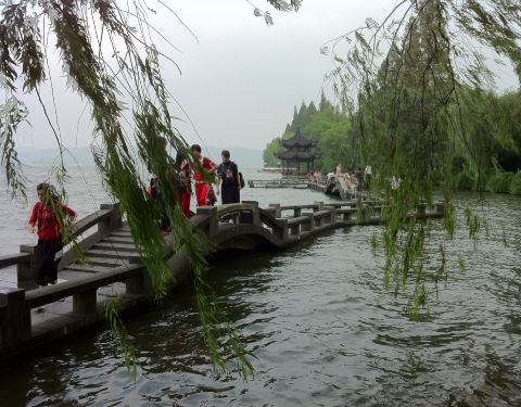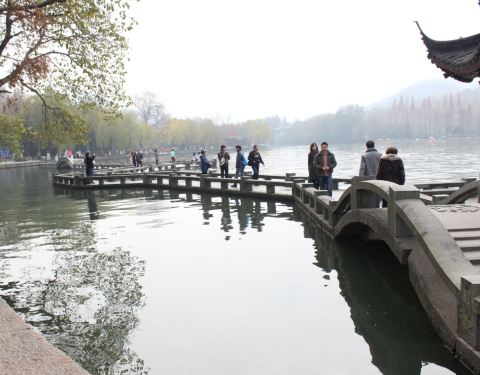 夕影亭位于长桥北端,其形状同湖滨一公园处的集贤亭基本相似,这里是整个西湖观赏西面对岸雷峰塔的最佳位置。 长桥在宋朝时又名双投桥,因在此桥下常有双双对对的有情人为恂情而双双投于桥下,故而得名,不禁令人唏嘘感叹。 长桥不长,指的是梁山伯与祝英台,两人在桥上送别,依依不舍,你送过来,我送过去,来回送了十八次。桥虽不长情意长,故民间有长桥之称。长桥九曲十八盘,为西湖三大情人桥之一,每逢春暖花开,长桥边上会闪动着许多美丽的蝴蝶。徜徉其中,美不胜收,情浓之际,桥须臾便尽,真乃长桥不长也。